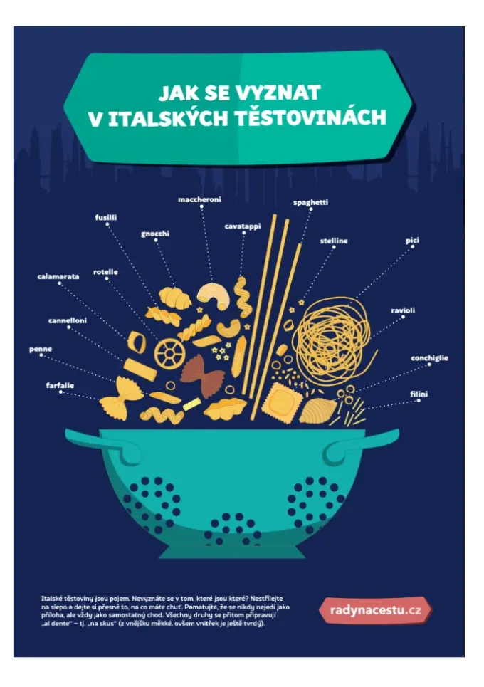 Cestovní kancelář Radynacestu je oproti všem ostatním speciální. Nezavede Vás do žádné turistické pasti, ale na místa, kam se jen tak jiní nedostanou. Uskutečňuje zájezdy po Evropě, Asii i USA. Dnes Vám představí něco více o Itálii a jejích pokrmech, mezi které patří samozřejmě výborné těstoviny.