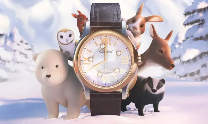 Je krásný den a slunce se odráží od třpytivého sněhu. Láska je rozhodně ve vzduchu, když Arty vyráží na procházku se svou novou láskou a narazí na nekonečně šik náramek Happy Hearts s lahodně tančícím diamantem a perleťovým srdcem. Bude to její? Jejich cesta pokračuje, posetá nádhernými dárky, ze kterých si mohou vybrat - nádherný náhrdelník z vysokého šperku s diamanty nebo prsten Happy Hearts Flower? Jsou tak zabraní do sebe a do pokladů kolem nich, že si ani nevšimnou, jak ubíhá čas! Ale nemají se čeho bát - šťastně jim Elliott, veverka, připomene čas s řadou úžasných hodinek Chopard.