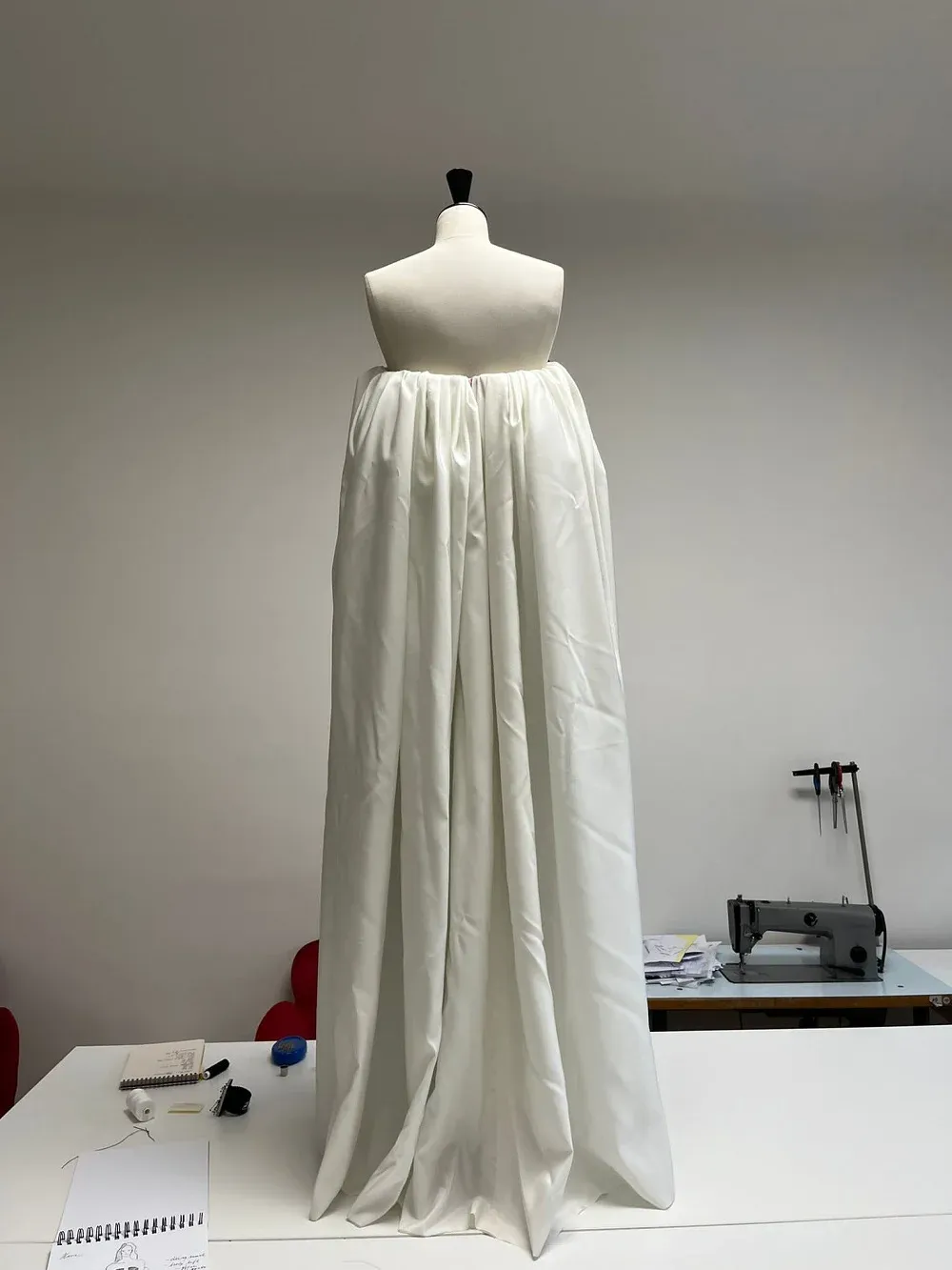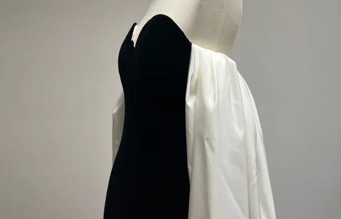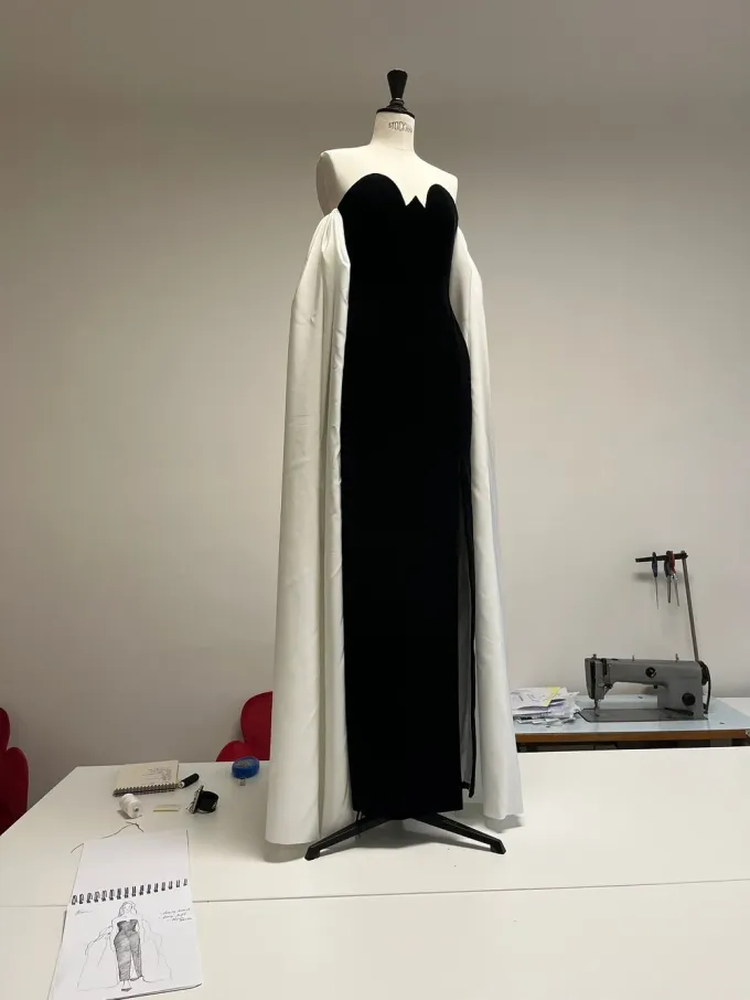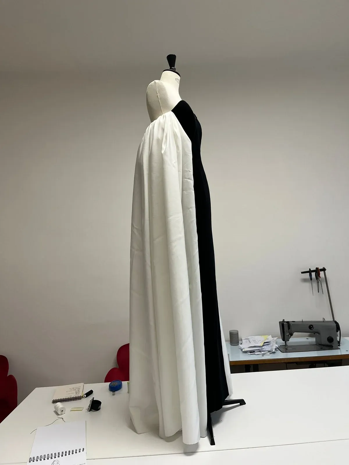 Jednoduché, čisté, noblesní a v barvách černé a bílé. Tak znělo zadání pro vytvoření večerní róby pro Hanu Vágnerovou na finále Schwarzkopf Elite Model Look 2023, které se konalo 30.8.23 ve Španělském sále Pražského hradu. Černobílá barevná kombinace bylo jediné konkrétní zadání, vycházející z barevnice a vizuální identity kosmetické značky Anna Brandejs jejíž tváří je právě Hanka.
