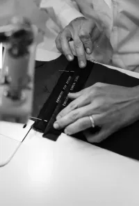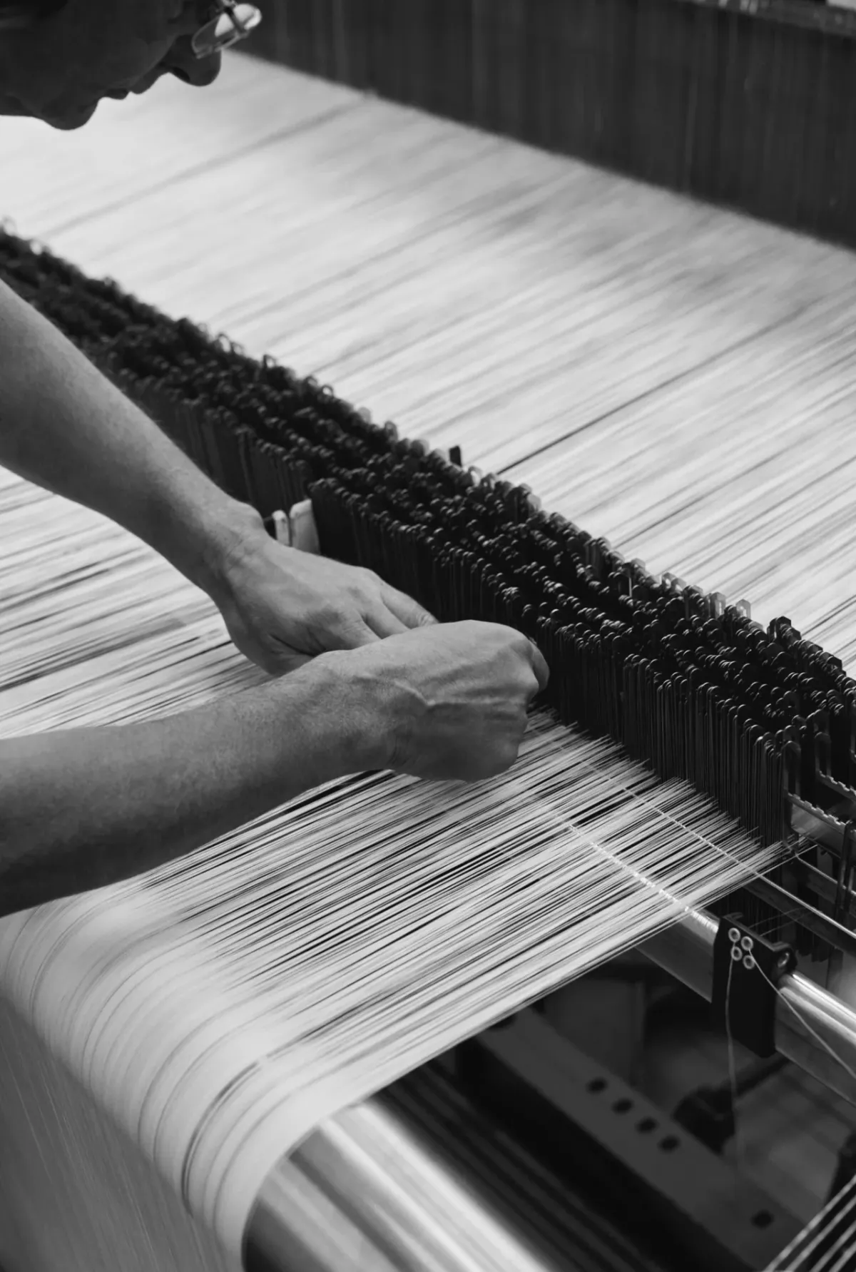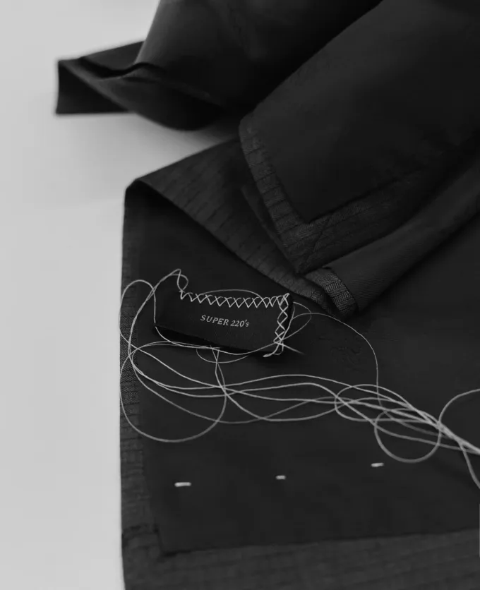 Finální úprava látky probíhá v ateliérech Dormeuil pomocí pokročilých lisovacích a lešticích technologií. Každé vlákno se tímto procesem stává vizuálně uhlazenějším a příjemnějším na dotek. Povrchová úprava dodává tkanině jemný lesk a hedvábnou texturu, kterou nelze zaměnit.