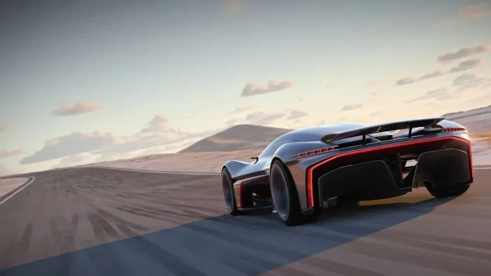 Interiér konceptu je podřízen funkci, dominuje mu letecký ovládací yoke namísto tradičního volantu a přehledná minimalistická palubní deska. Vše nasvědčuje tomu, že hlavní využití vozu by se odehrávalo na okruzích. Nejnápadnějším exteriérovým prvkem je jednolitá karoserie s výklopným střešním systémem na předním pantu. Tato konstrukce umožňuje snadnou transformaci z uzavřeného vozu na otevřený stroj pro traťové nasazení. Designový motiv čerpá inspiraci z kalifornského životního stylu i samotného prostředí jižního pobřeží USA.