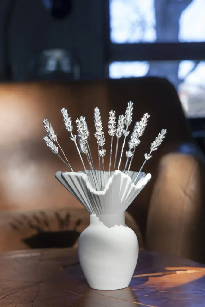 Vázy stříbrných nebo zlatých květinových šperků vytváří působivou, jemnou dominantu prostoru. A část lidí kupuje květiny pro ozdobu domova ve vázách.