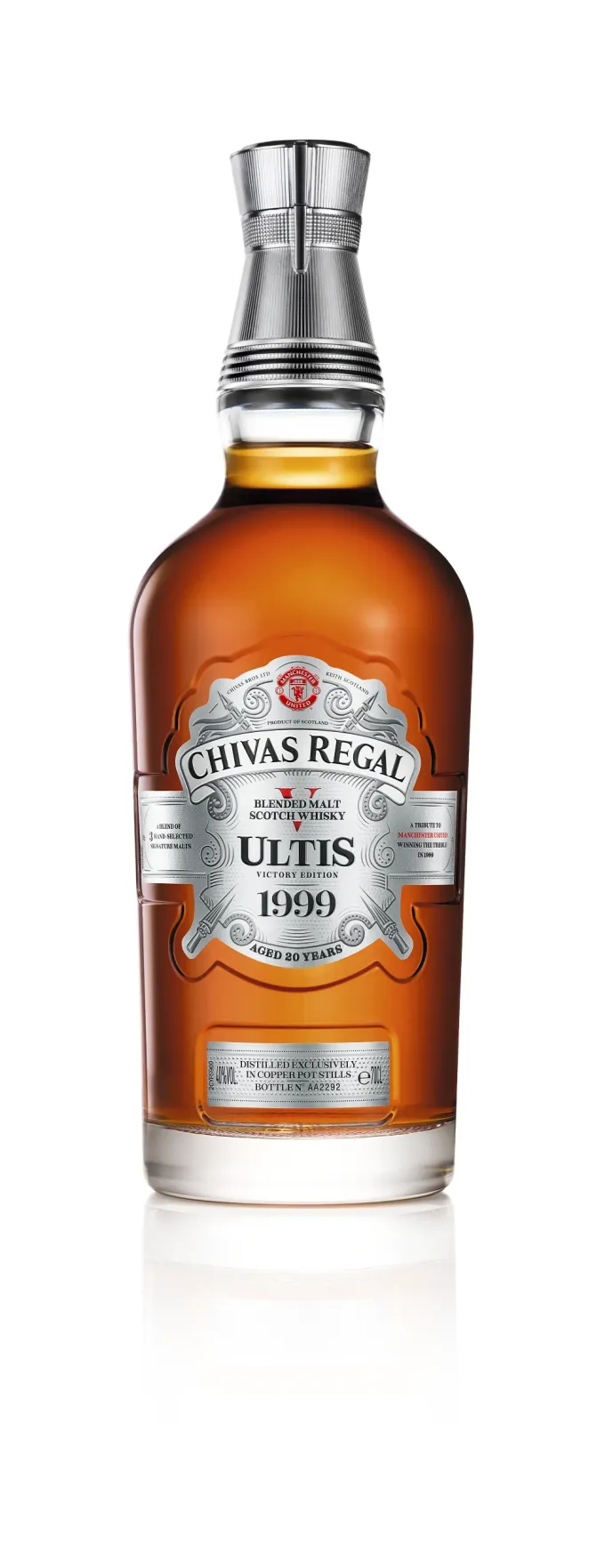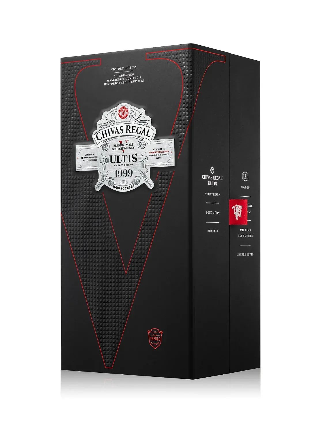Před dvaceti lety se Manchester United, pod vedením Sira Alexe Fergusona, stal prvním anglickým týmem, který získal tzv. „Treble“, tedy trojité vítězství v anglické lize Premier League, anglickém poháru FA Cup a Lize mistrů UEFA ve stejné sezóně. Na počest tohoto unikátního trojnásobného vítězství vybral Chivas Regal tři ze svých nejvzácnějších signovaných, jednosladových whisky – pro každé vítězství Manchester United jednu – a vytvořil whisky Chivas Regal Ultis 1999 Victory Edition, neuvěřitelně jemný a luxusní blend na oslavu jedné z nejúspěšnějších sezón v anglické fotbalové historii. Do České republiky se dostává v omezeném počtu 156 lahví.