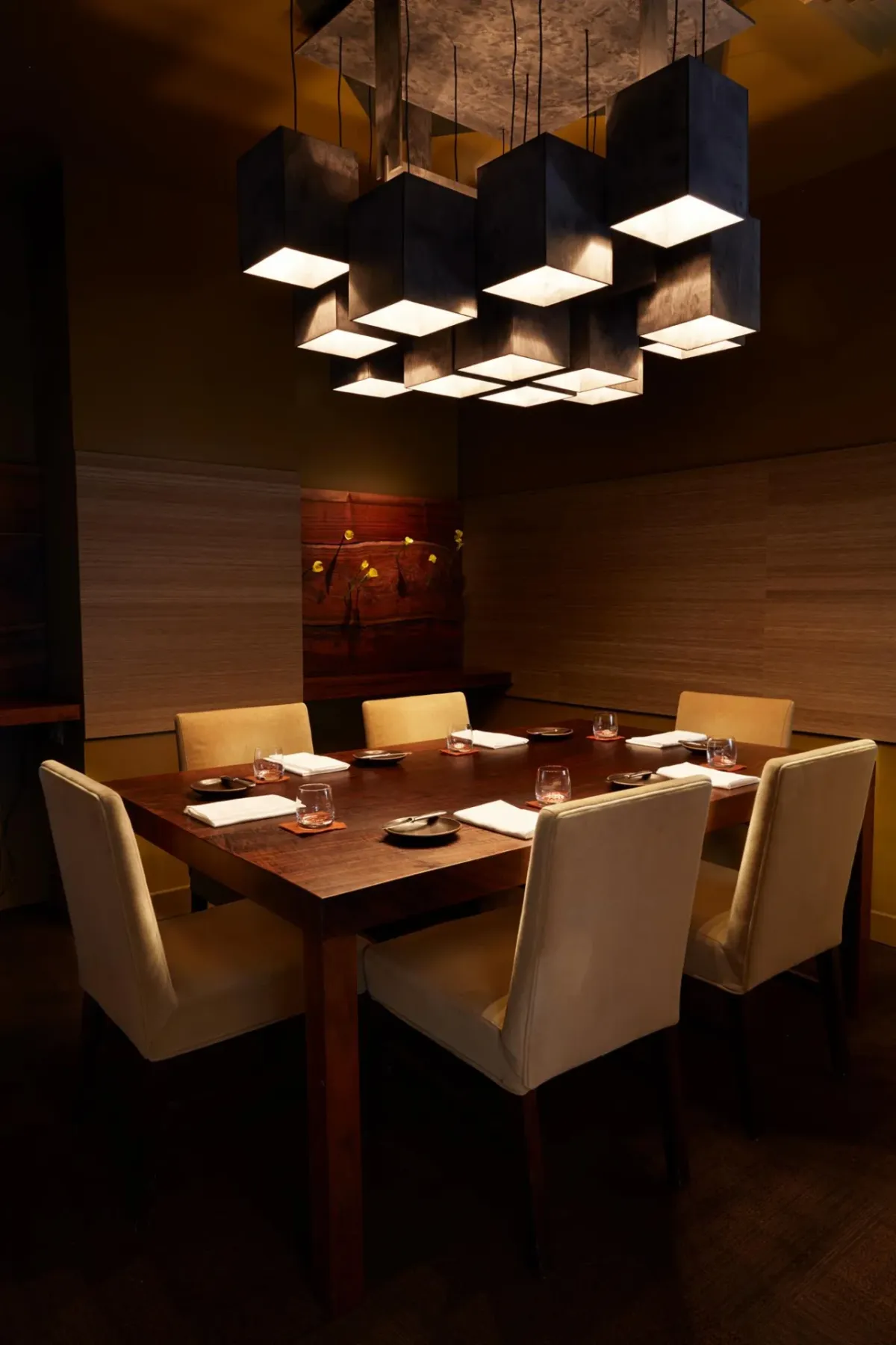 Interiér restaurace Coi je minimalistický a moderní, navržený tak, aby hosté mohli plně ocenit každé jídlo bez zbytečných rozptýlení. Prostor je jednoduchý, ale elegantní, s jemným osvětlením, které vytváří intimní atmosféru vhodnou pro klidnou večeři plnou kulinářských objevů.