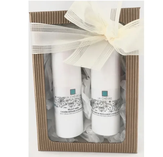 Balíček obsahuje dva pečující produkty na tělo. Tělový krém s kozím máslem a bylinkami, který má vysoké hydratační, zklidňující i zpevňující účinky. Celkově zlepšuje vzhled celého těla a působí i na podrážděnou pokožku. Druhým produktem je výživný krém na ruce a nohy s kozím máslem, který regeneruje a zvláčňuje, upravuje ochrannou bariéru pokožky.