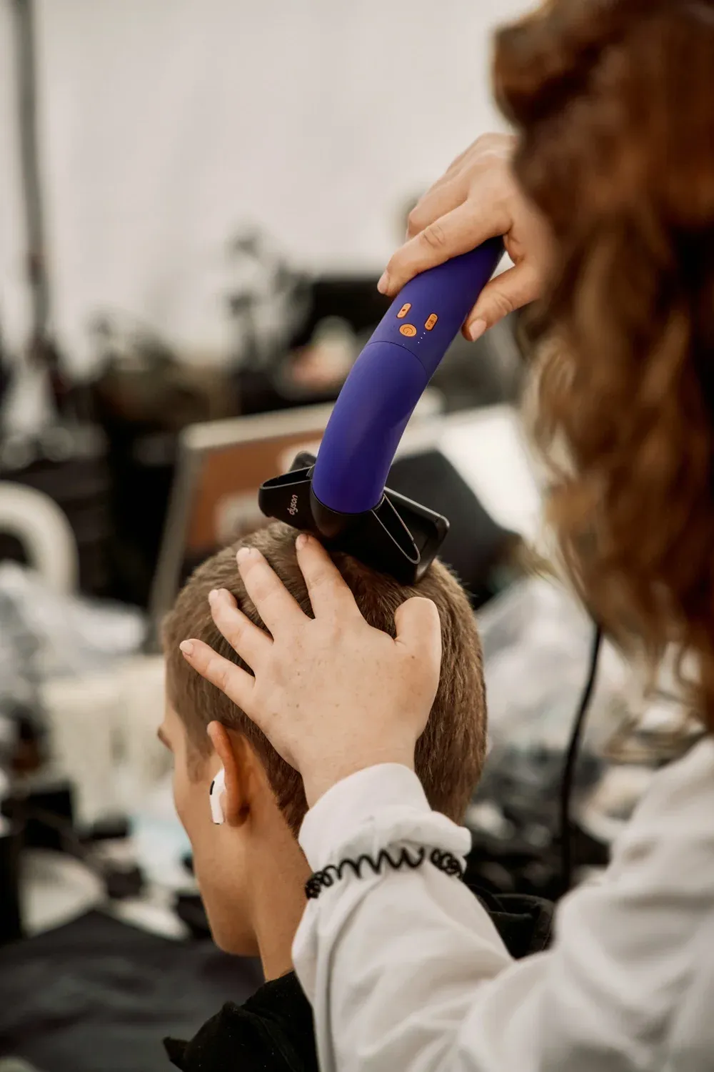 Anthony Turner společně se svým týmem kadeřníků používal při své práci stylingové přístroje Dyson, včetně nového fénu Dyson Supersonic r™ Professional, který jim umožnil připravit modelkám vlasy a vytvořit všechny účesy pro přehlídku. „Tento fén je velmi přesný, což mi dává během tvoření účesu mnohem větší kontrolu. Je to jako prodloužená ruka nebo jako štětec malíře,“ říká Anthony Turner o používání fénu Dyson Supersonic r™ Professional. Díky pěti tryskám vysoušeč usnadnil úpravu vlasů modelek a zároveň pomohl dosáhnout optimálního lesku, o který Anthony Turner usiloval. „Můžeme mnohem snadněji manévrovat kolem určité oblasti a soustředit se na konkrétní místa. Někdy chceme ve vlasech udělat „zářezy“ pomocí fénu a laku na vlasy. Díky fénu toho můžeme snadno dosáhnout. Je to téměř jako štětec. Práce je mnohem plynulejší a dává tvůrčí svobodu. Líbí se mi to,“ dodal kadeřník.