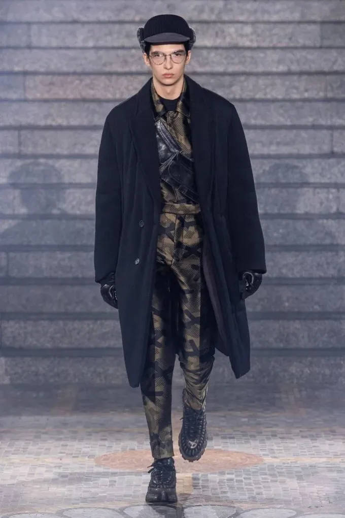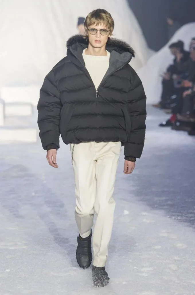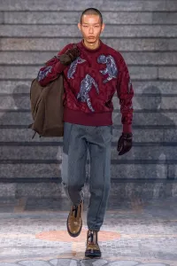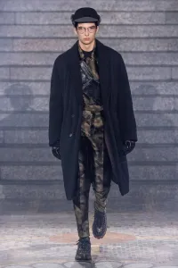 Svrchní oděvy jsou dramatické a objemné: nabírané bombery, prošívané parky s odnímatelnými límci a pletené kabáty. Bundy mají štíhlejší a delší tvary, skrytá zapínání a geometrické kapsy. Dlouhé kalhoty se zužují směrem dolů k elastickému zakončení. Texturní možnosti nabízí pletení. V kolekci je temperamentní směs vzorů, žakárů. Textilní vazby kašmíru a kůže. Slogany a odvážné vizuální abstrakce ve formě potisků nebo výšivek.