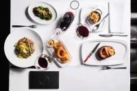 Úvodní část menu otevírá polévka bisque z kanadského humra, který kuchaři zapékají pod čepici z listového těsta. Prolomení křehké zlatavé krusty uvolňuje intenzivní aroma moře, které skvěle doplňuje vůně letitého sherry. Polévka vyniká krémovou konzistencí a hlubokou chutí korýšů, přičemž kousky máslového těsta dodávají pokrmu příjemnou texturu.