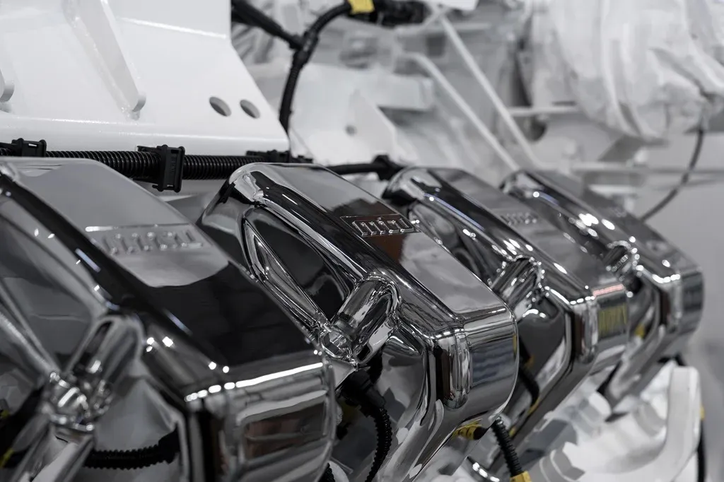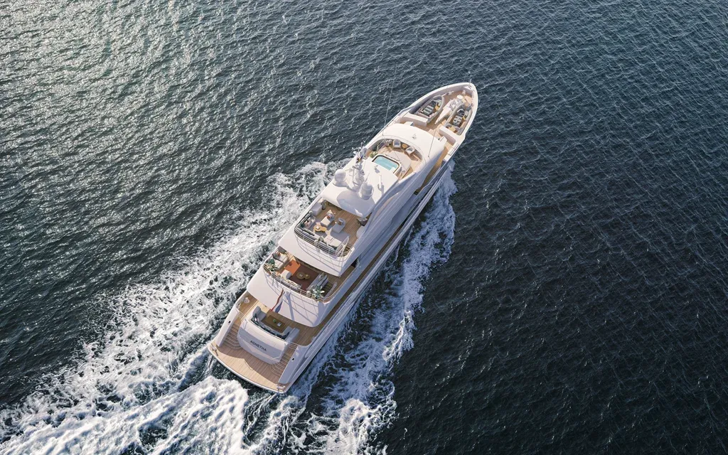 Pod povrchem je tato jachta dílem inženýrství, poskytující výjimečný výkon. Její vysoce efektivní a pohodlný trup Fast Displacement, v kombinaci se dvěma motory MTU8V4000 M63 (IMO Tier III), umožňuje dosáhnout maximální rychlosti 15,5 uzlů. Je navržena tak, aby bezpečně plula ve všech mořských podmínkách, což z ní činí ideální modrou motorovou jachtu pro plavby kamkoliv.