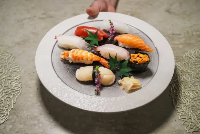 - Menu „Signature Course – Sushi Temari“: 6 předkrmů, 9 kusů temari sushi, polévka