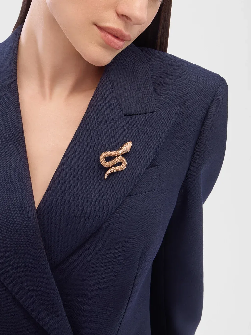 Diamanty v pavé osazení rozjasňují hlavu i ocas hada a onyxové oči podtrhují jeho vrozený magnetismus. Výrazná silueta brože a její nadčasová, genderově neutrální elegance odráží současný styl a vyjadřuje ducha proměny. Nabízí nekonečné možnosti, jak ikonický symbol nosit a znovu objevovat.