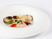 Pokračujeme chodem A Campo Aperto, nádherně vyvážený chod s cuketou, chřestem Bassano, olejem z petržele, crème fraîche, sezónními mandlemi a kaviárem Arenkha. Jemnost ingrediencí je zdůrazněna čerstvými černými lanýži, které tomuto chodu dodávají intenzivní aroma. Každé sousto je zážitkem, který spojuje různé textury a vůně do harmonického celku.