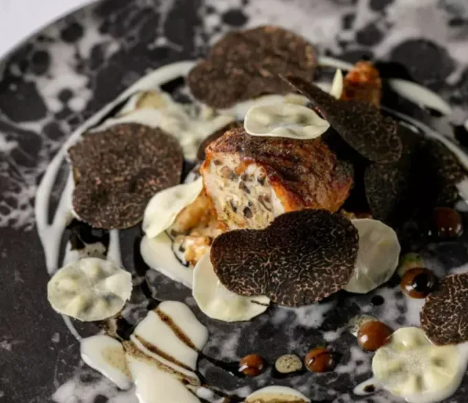 Jedním z hlavních chodů, který na hosty udělá hluboký dojem, je pokrm připravený ze šestiletého Jersey hovězího. Toto hovězí maso, známé svou jedinečnou texturou a chutí, pochází přímo z farmy, kterou vlastní Brett Graham. Maso je podáváno s jemně upravenými sezónními přílohami, které podtrhují jeho přirozenou bohatost. V menu se také objevuje makrela z Poole Bay, která je známá svou čistou chutí a jemností. Makrela je připravena s minimálním zásahem, aby její přírodní chutě zůstaly neporušené a dokonale se spojily s ostatními ingrediencemi.