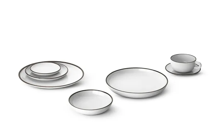 Podívejte se na luxusní talíře i hrnky, které prodává společnost Premium Home. Tato kolekce se vyznačuje především výrazným šedohnědým lemováním, které vytváří robustní rámec prezentovaným pokrmům.
