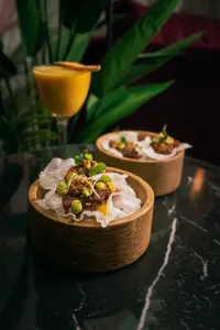 Část ingrediencí z předchozího koktejlové sestavy v menu zůstala, ne nutně ale ve stejné podobě. A tak zatímco jeden z loňských bestsellerů, koktejl Mango, jenž se míchá z rumu infuzovaného kampotským pepřem, mangového pyré a sirupu, limetové šťávy a lžičky mascarpone, se nezměnil vůbec, Galangal, což je asijský twist na klasický koktejl Penicillin, dostal novou ozdobu. „Servírujeme ho se sušenkami štěstí tzv. ,, fortune cookies‘‘, do nichž jsme si nechali zapéct vlastní quotes provázané na téma baru nebo koktejlů. AI nám jich vymyslela dvacet a my jsme je ještě trochu doladili,“ prozrazuje Ben Houda s tím, že každý pátý koláček skrývá ještě malé překvapení (výherní quote).