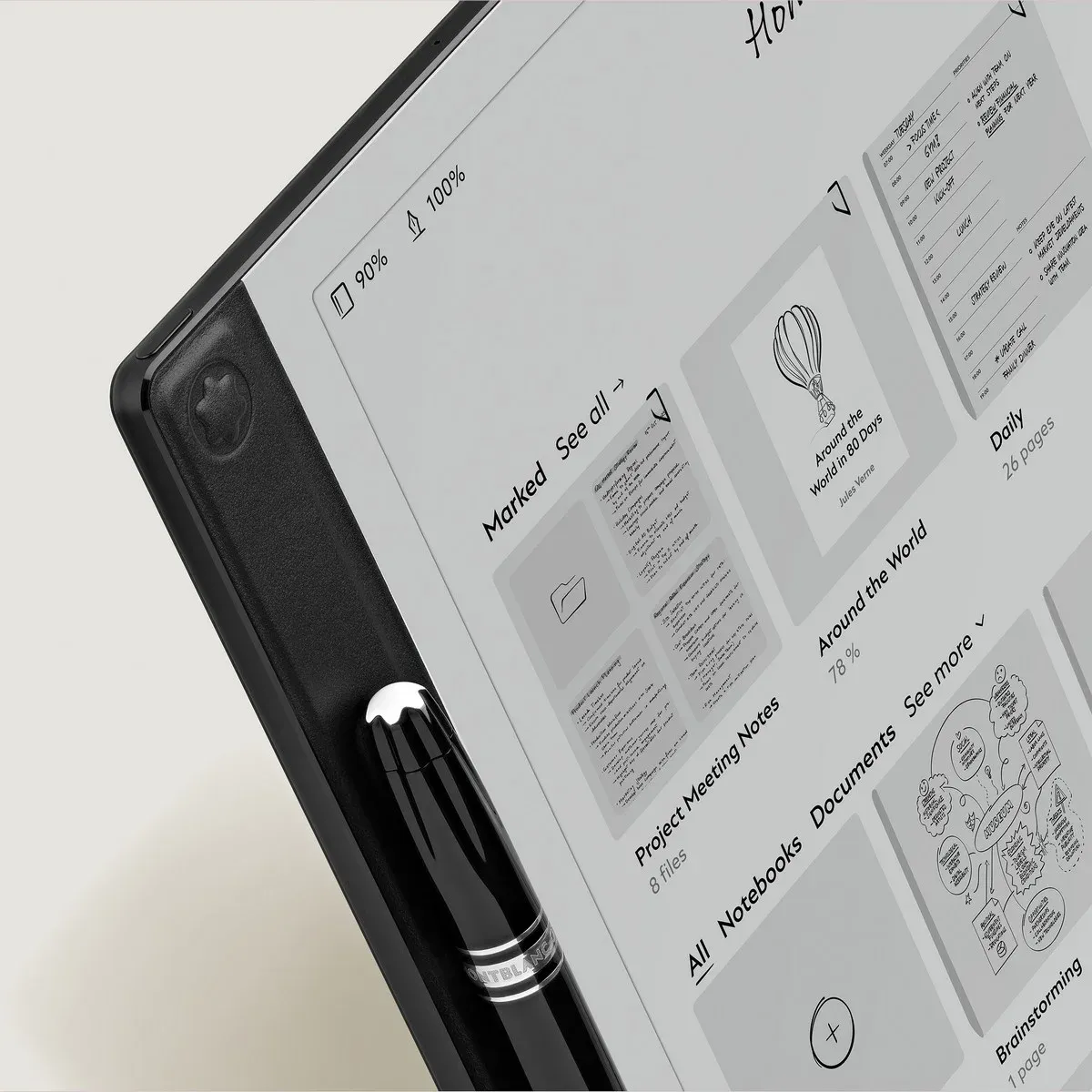 Klíčovým prvkem zařízení je digitální pero Montblanc Digital Pen. Je inspirováno ergonomií plnicího pera Meisterstück a nese i jeho charakteristické detaily – tři kovové kroužky a emblém Montblanc na vrcholu. Součástí digitálního pera jsou tři vyměnitelné hroty, z nichž každý napodobuje jinou strukturu papíru, takže si každý může zvolit styl psaní podle svých preferencí. Displej s vysokým rozlišením a elektronickým inkoustem pak zprostředkovává haptický zážitek věrně odrážející psaní s tradičním perem Montblanc.