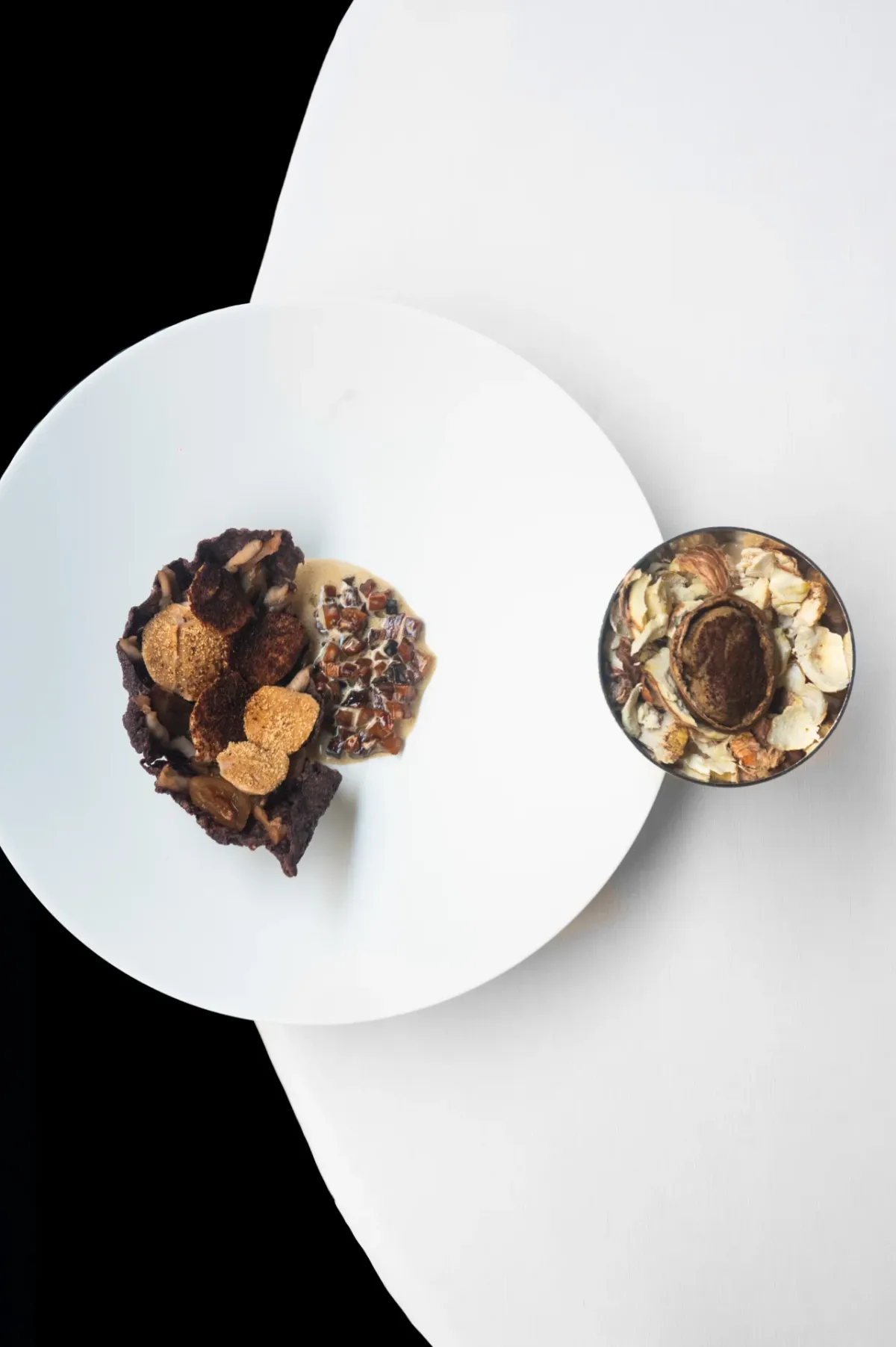 První chod, lehce uvařené toro s mrkví z Kjóta a vin jaune zabaglione. Toro je nejtučnější a nejlahodnější část tuňáka, která byla jemně tepelně upravena, aby zůstala šťavnatá a měkká. Mrkev z Kjóta je známá svou sladkostí a šťavnatostí, která kontrastovala s lehkou a pěnivou omáčkou z vin jaune, což je speciální druh bílého vína z Francie. Tento pokrm byl dokonalou kombinací chutí a textur, která mi rozproudila chuťové pohárky.