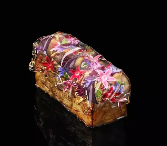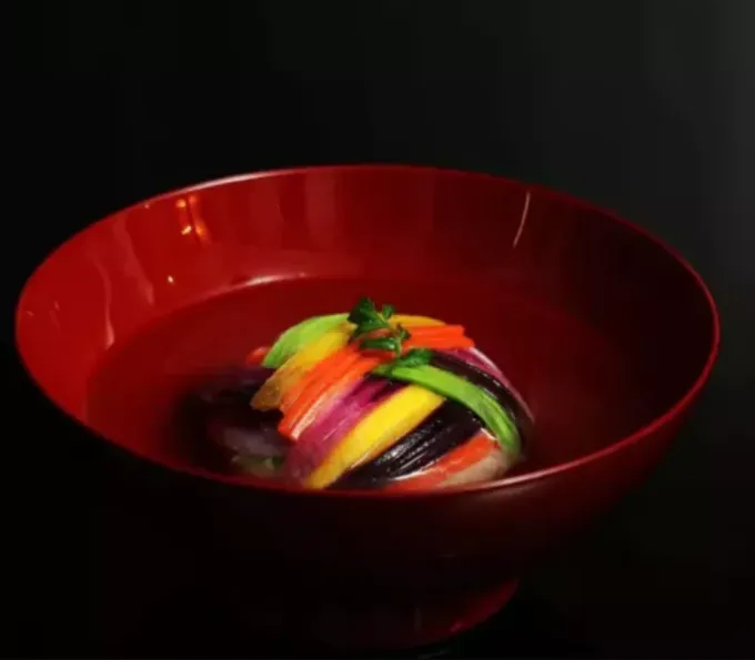Dalším vrcholem menu je "Langoustine with Bamboo and Yuzu", kde je langustýn připraven s precizností a servírován s bambusovými výhonky a citrusovým yuzu, což přináší svěží a intenzivní chuťový zážitek. Tento pokrm je nejen vizuálně krásný, ale také dokonale vyvážený v chutích, což je pro Narisawovu kuchyni charakteristické.
