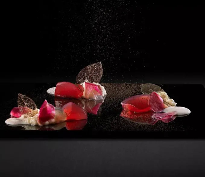 Dezertní část menu je také poctou přírodě a sezóně. "Water", jeden z oblíbených dezertů, je lehký a osvěžující, často zahrnující prvky, jako je gel ze sezónních plodů a jemná sladkost japonských citrusů.