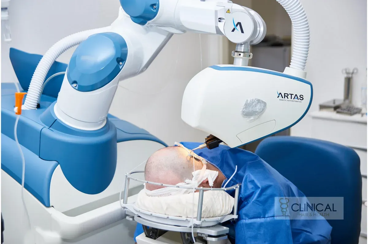 Klinika je ale dále výjimečná i díky robotické transplantaci, kterou je zde možné podstoupit již čtvrtým rokem. O co se vlastně jedná? Při takovém zákroku se využívá robotický přístroj ARTAS, jenž je schopen pod dohledem lékaře šetrně a velmi přesně extrahovat vlasové folukuly s minimální ztrátou. ARTAS je na světě jediným kusem robotem, který takovouto šetrnou práci zvládne a zkracuje tak zákrok i dobu rekonvalescence na minimum. Zvládne totiž za jedno sezení třikrát větší zákrok než lékař.