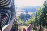 Z naší vinice máme ve výhledu nádhernou soutěsku na Labi, zvanou Porta Bohemika, neboli Brána Čech. Její vznešená krása nám byla inspirací . V okolí je mnoho krásných pohledů na vulkanické kopce Českého středohoří. Ostatně naše moto je Vína s výhledem, což znamená, že naše vína po letech dozrávají do harmonie.