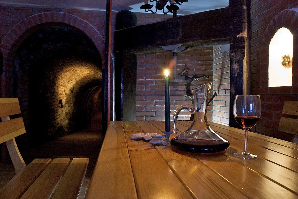 Oba dva penziony máme postavené s vlastními historickými sklepy ve sklepní uličce Zelnice, v obou je z bývalých lisoven udělaná degustační místnost, ve které nemáme hodiny, televizi ani WIFI, tak, aby se návštěvník mohl plně věnovat pouze vínu a nic ho nerozptylovalo.