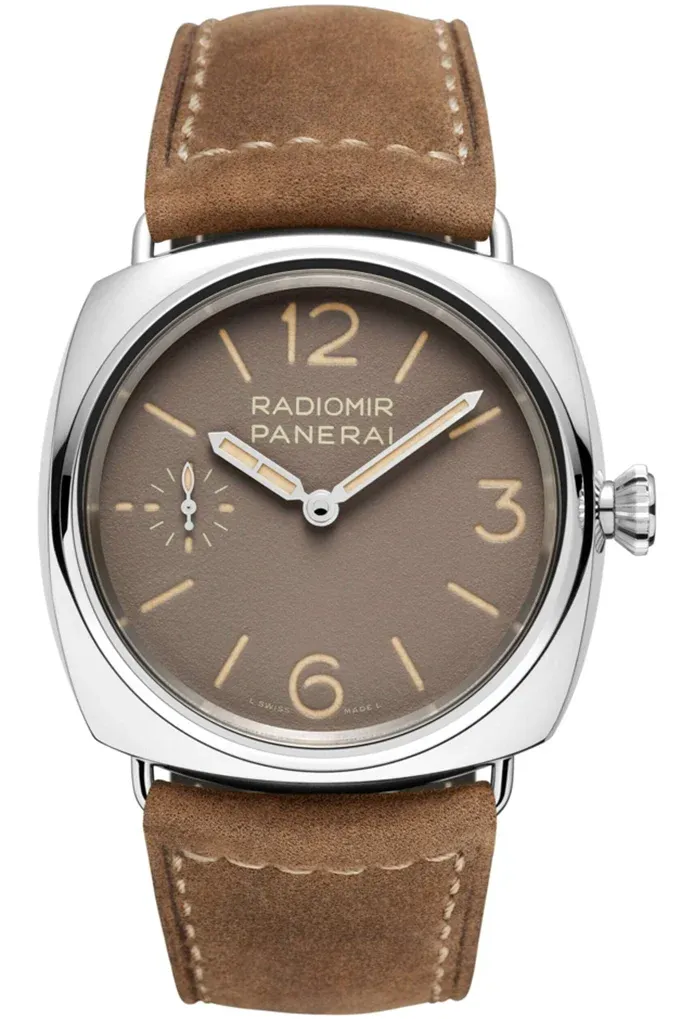 Hodinky mají 45mm pouzdro z leštěné oceli a hnědý ciferník s indexy a číslicemi pouze na dvanáctce a šestce. Ciferník je osvětlen zelenou Super-LumiNova, která napodobuje stárnutí původní radiumové látky3. Hodinky jsou poháněny ručně natahovaným kalibrem P.6000 s rezervou chodu 72 hodin. Hodinky jsou doplněny tmavě hnědým koženým řemínkem a originálním držákem z vlněného plsti, navrženým Billem Ambergem.