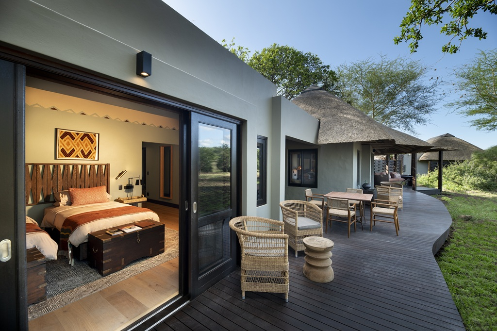 Interiér z pera studia Hubert Zandberg Interiors nově charakterizují přírodní tóny, ručně vyrobené detaily a africké umění zachycující tvary, barvy a textury lokální fauny. Každé apartmá včetně nového rodinného nyní disponuje soukromou salou, která hostům poskytuje zastíněný venkovní prostor pro stolování, čtení nebo klidné chvíle mezi safari vyjížďkami. Ohniště a boma disponují výhledem na upravené napajedlo, u kterého se pravidelně shromažďuje divoká zvěř.