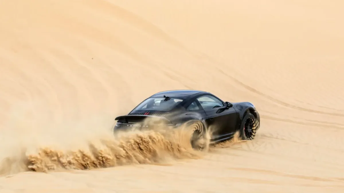 Nové Porsche 911 Dakar se muselo osvědčit rovněž na rychlých písčitých tratích a ve vysokých dunách. V Dubaji a Maroku testovací jezdci nemilosrdně vodili terénní sportovní kupé po strmých 50metrových dunách při teplotách až 45 °C. „Model 911 Dakar předvedl suverénní výkon i v poušti,“ říká Fank Moser, viceprezident modelové řady 911/718. „Zejména zde může 911 Dakar maximálně využít výhod své koncepce – kombinace nízké hmotnosti, vyšší světlé výšky, výkonného motoru umístěného vzadu a krátkého rozvoru vytváří vzrušující zážitek z jízdy. Zažil jsem to na vlastní kůži na Sahaře.“