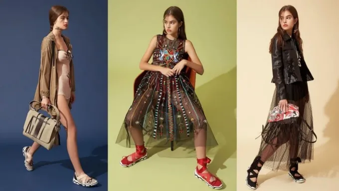 I proto Pierpaolo Piccioli a jeho tým do kolekce Red Valentino vnesli mnoho opačných prvků jako je jemnost plisé a ráznost sportovních kousků nebo květinový vzor a print inspirovaný tetováním. Kolekcí se prolínají jemné pastelové tóny modré, béžové a růžové s ikonickou červenou barvou značky.