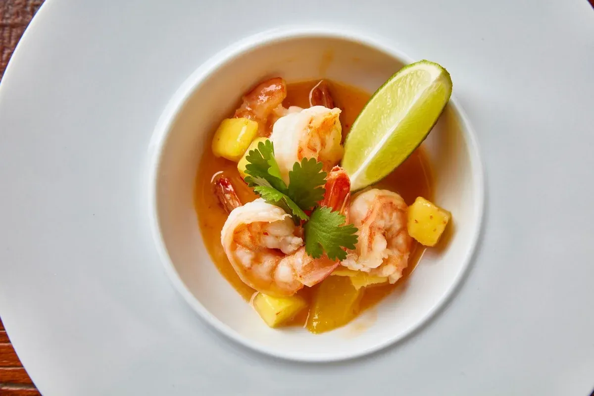 Jako předkrm jsem si objednal krevety v kokosovém mléce s mangem a chilli. Tento pokrm byl skvělým zahřátím chutí. Krevety byly měkké a šťavnaté, kokosové mléko bylo krémové a aromatické, mango dodalo sladkost a chilli trochu pálivosti. Byla to dokonalá kombinace chutí a vůní. Skvělá volba jako předkrm pro milovníky mořských plodů.