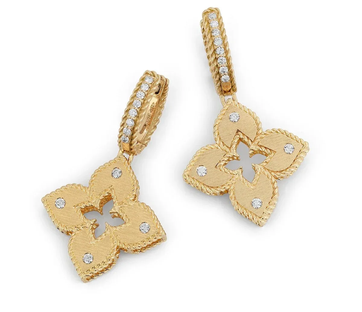 Roberto Coin sáhl po svém ikonickém motivu kroucené nitě. Zářivá vazba zahaluje šperky do tajemství, jež připomíná starobylé paláce Benátek. Růžové zlato evokuje slunce odrážející se na blyštivých kupolích. Bílé diamanty se ve špercích třpytí jako odhodlání v očích žen, které jsou jimi ozdobeny. Ať už si vyberete ornamentální náramek nebo jemné náušnice, dáte najevo, že ze svých snů umíte stvořit realitu. Proměňte život okolo sebe svým kouzlem k lepšímu a staňte se heroickou princeznou těchto dnů.