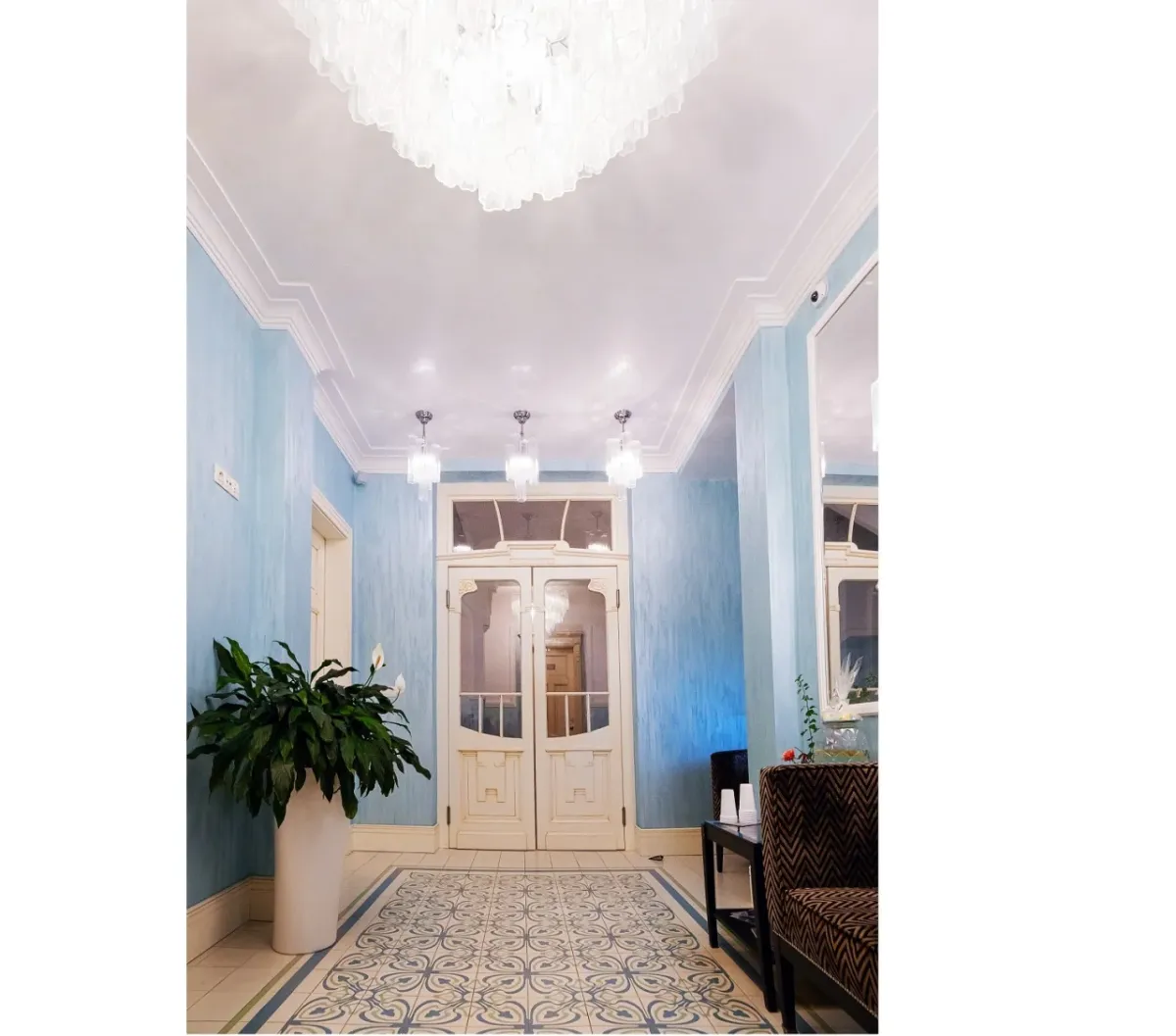 Okouzlí Vás secesní, křehká výzdoba rostlinných ornamentů. Má v sobě genus noci a původní krásu a vznešenost historického domu.