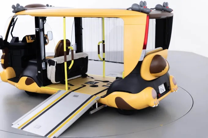 Dokonce i takto upravený APM umožňuje vozit také vozíčkáře, dalším základním prvkem je zvýšené sedadlo řidiče, které usnadňuje otočení a kontrolu bezpečnosti cestujících při rozjezdu. Vozítko bylo speciálně vytvořeno pro japonský Ghibli Park, kde od letošního března vozí návštěvníky. Ta tajemná poznávací značka proto znamená právě „Ghibli Park“.