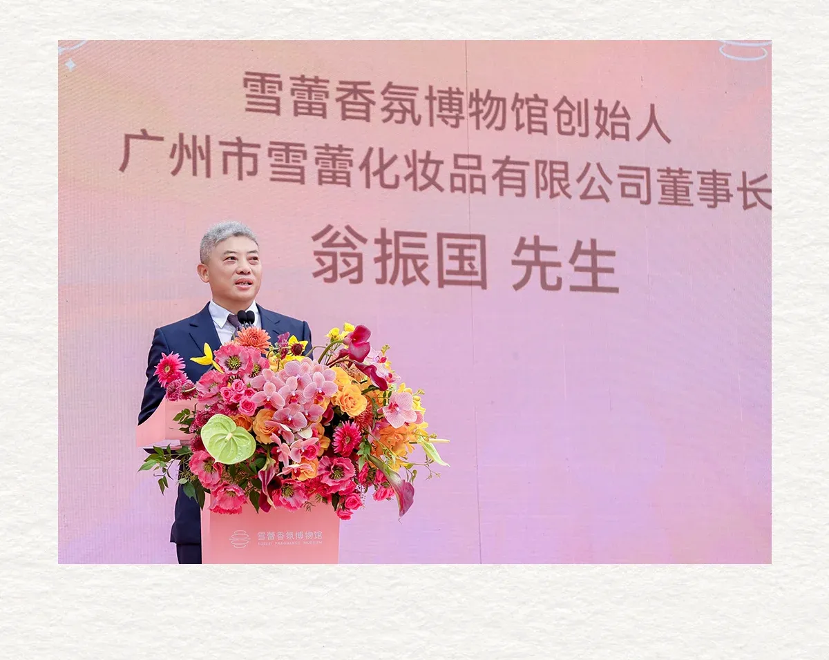 Slavnostního otevření se zúčastnili vedoucí představitelé a zástupci předních světových parfumérských domů, včetně Givaudan, Firmenich, IFF, Symrise, MANE, Iberchem a CPL Aromas, kteří muzeu blahopřáli k oficiálnímu zahájení provozu. Všechny tyto společnosti se na výstavbě muzea také podílely. Předseda představenstva skupiny Xuelei a zakladatel muzea, pan Weng Zhenguo, přispěl svým ohlédnutím na téměř 30letou cestu společnosti na poli inovace parfémů, vyjádřil upřímnou vděčnost svému týmu a partnerům a podělil se o svou vizi budoucnosti odvětví vůní v Číně.