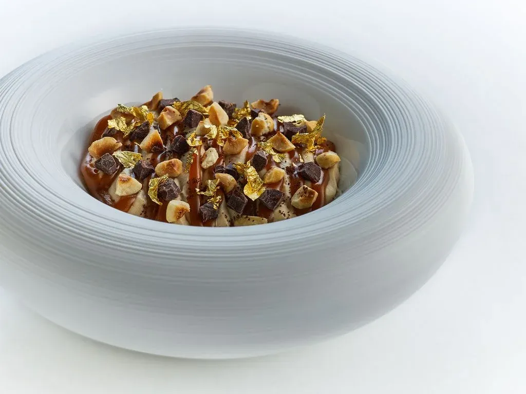 Závěrem se servíruje takzvaný Lískový ořech – lahodná stavba z lískových oříšků, slaného karamelu, francouzské pasty z lískových oříšků, jemně alkoholické zmrzliny Baileys, panenského oříškového oleje a francouzské šlehačky.