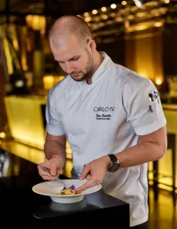 Seznamte se s Janem Knedlou, šéfkuchařem hotelu Carlo IV, který si vybírá to nejlepší z haute cuisine, z moderních gastronomických trendů i z mimoevropských kuchyní, aby povýšil každý pokrm na koncert pro všechny smysly.