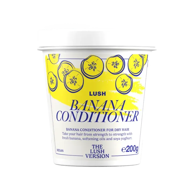 Tento kondicionér pečuje o suché, namáhané a chemicky ošetřované vlasy, aniž by je zatěžoval, a dodává jim potřebnou vláhu i objem. Více než 30 % tvoří gel z mořské řasy agar agar, který podporuje jemnost a lesk, zatímco sójový jogurt spolu s arganovým a olivovým olejem posilují vlasové vlákno a usnadňují rozčesávání. Banánová vůně navíc dodává celé péči lahodně hřejivý charakter.