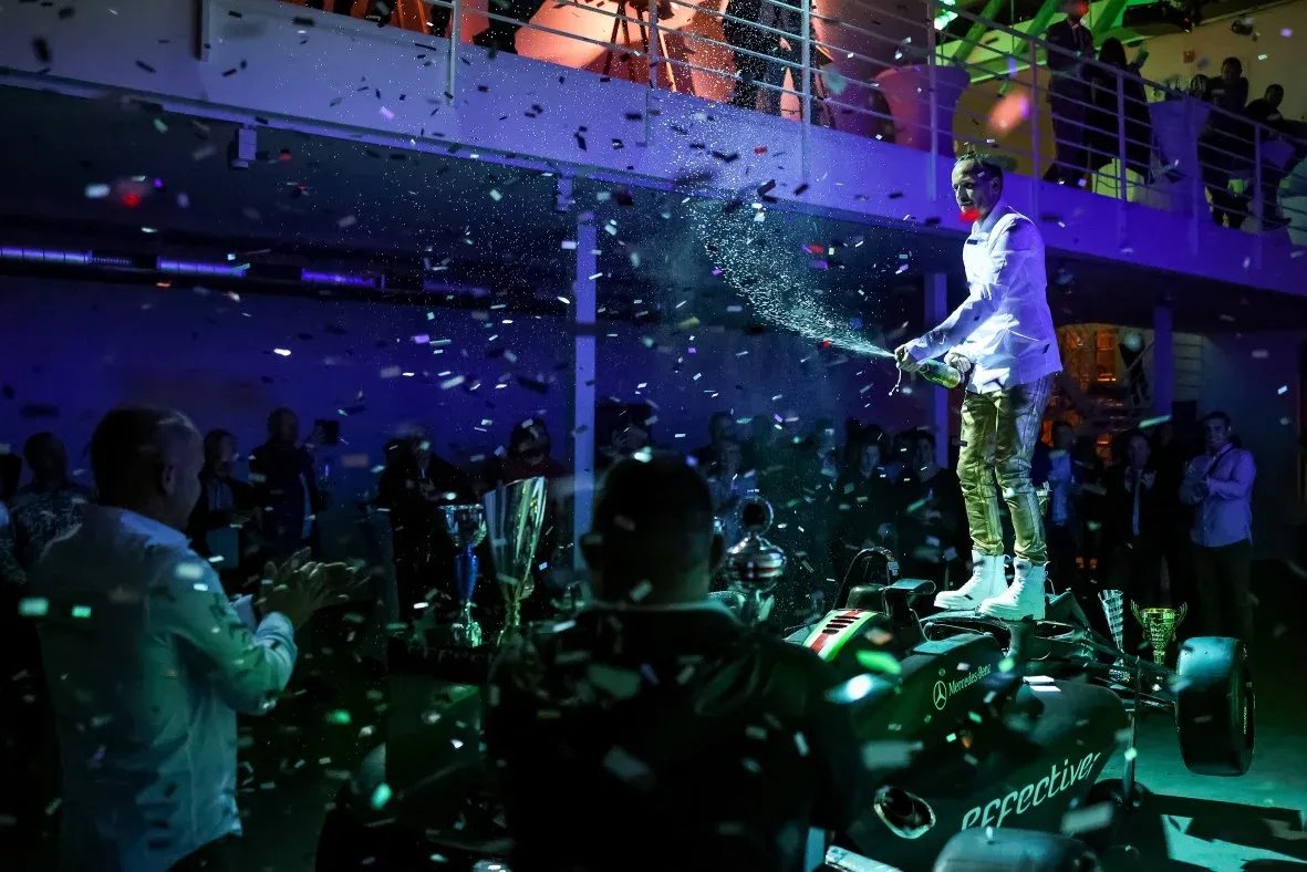 Protože se slavilo velké vítězství, bylo velmi vkusné, že se o večer postarali ty nejlepší ve svém oboru, a to platilo i pro catering, který v rámci partnerství s Effective Racing dodal Business Club Pelikán. Konzumovalo se to nejlepší, jak již napovídala pozvánka na večer, kde bylo slíbeno šampaňské a kaviár. Vladimír si stříkání šampaňským, které zažil několikrát i v průběhu sezóny, neodpustil ani tentokrát, a tak jsme se ho při té příležitosti zeptali na plány pro příští rok.