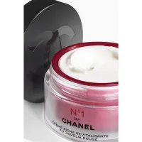 DE CHANEL RICH REVITALIZING CREAM, koncentrovaný s extraktem z červené kamélie, olejem z červené kamélie a ceramidy, vyhlazuje vzhled vrásek a dodává pohodlí a zářivost, to vše při ochraně před agresory životního prostředí a chladným zimním počasím. Sametová textura se vstřebává do pokožky a zanechává jí mladistvý jas.