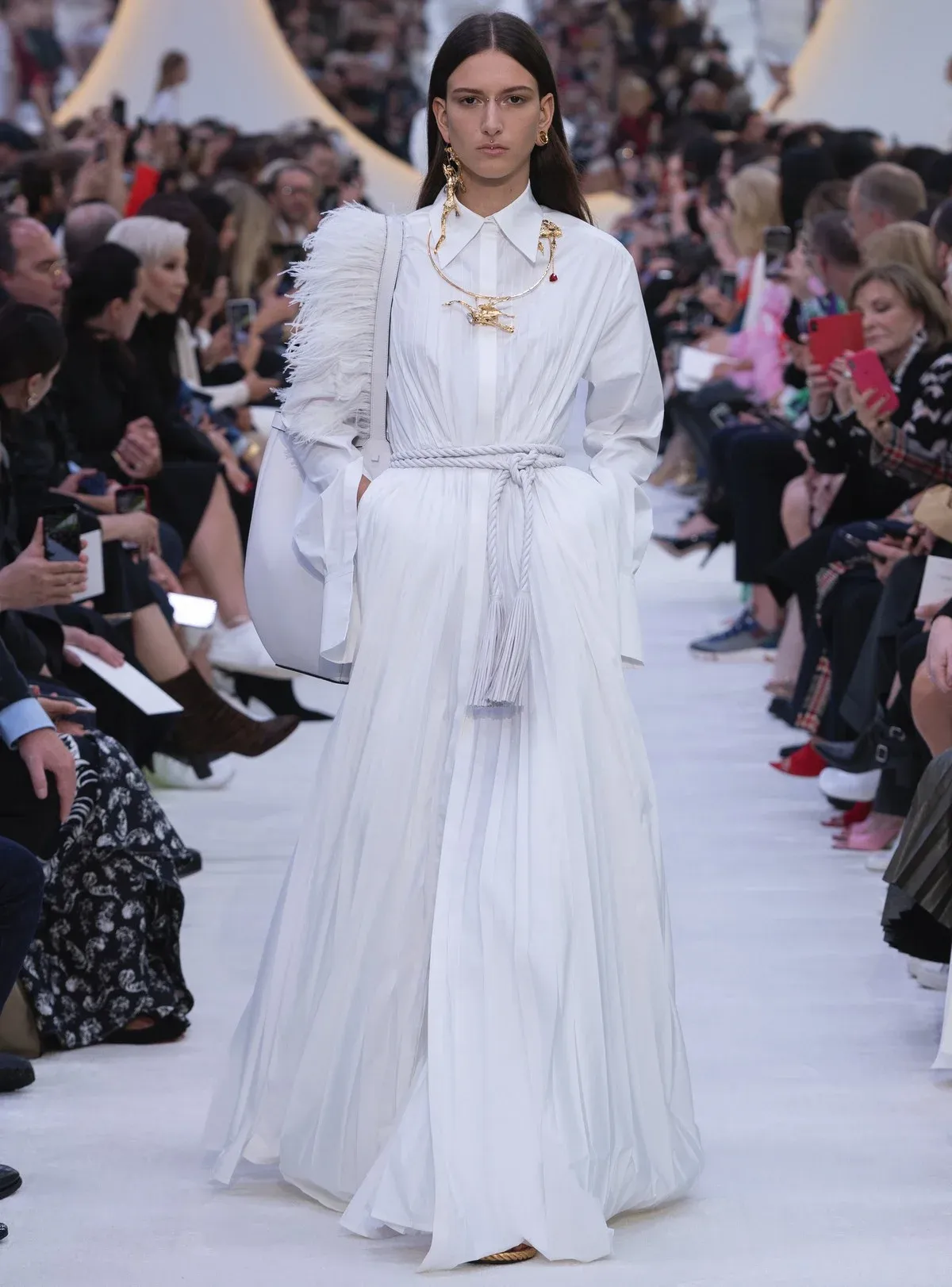 Bílá barva radikálně minimalizuje zdobnost a oslavuje tvar. Kreativní ředitel Pierpaolo Piccioli separoval základní elementy Couture a některé z nich použil, aby je představil v běžné univerzálnosti bílé košile. Bílá zde nepředstavuje minimalistickou variantu. Naopak. Všudypřítomná bílá barva se objevovala již v 16. století v černobílých kresbách a díky vyváženosti mezi technikou šerosvitu, tělesy a prostorem, vytváří trojrozměrné výjevy s úžasnými výsledky. Bílá je instrumentem oslavy formy a objemu; je zjevením metaforického roucha, mocného a nádherně čistého. Na nepopsaném listu, který je zároveň kreativním prostorem, nemohou vzniknout žádná pochybení a Pierpaolo Piccioli to potvrzuje svou krejčovskou mistrností, která je zbavena rušivých barevných elementů.