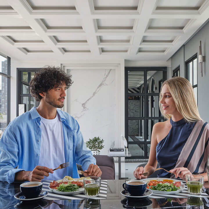 Stylový design apartmánu okouzlí každého svou jednoduchostí a dekadencí v detailech. Interiér evokuje atmosféru luxusní jachty s dubovými podlahami a stěnami obloženými světlým nebo tmavým ořechovým dřevem. Každý kus nábytku je pečlivě vybrán a přispívá k rafinovanému celkovému dojmu. Konzolový stůl, všívané křeslo George Smith a fotografie ve zlatém rámu od Hendrika Kerstense dodávají apartmánu eleganci a šarm.
