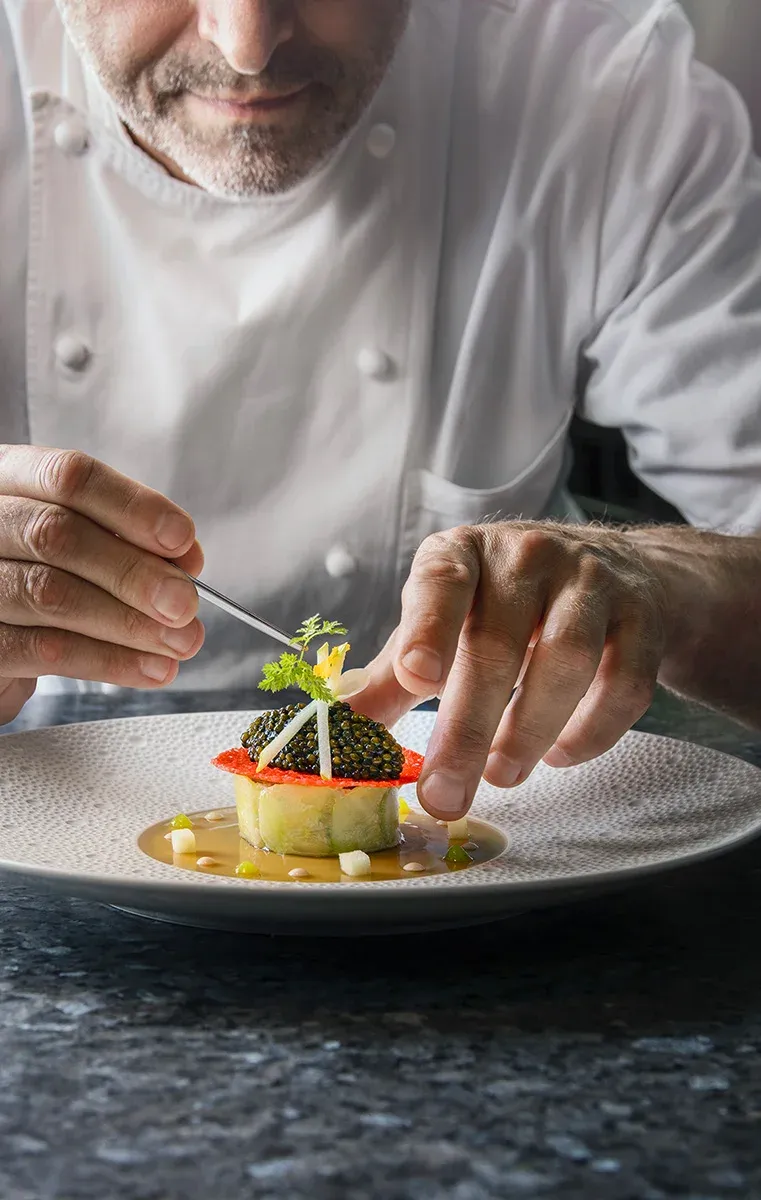V Domaine de Châteauvieux se jídla dostávají pod ruce skvělých šéfkuchařů Philippa Chevriera a Damiena Coche, kteří si zakládají na tom, aby jejich jídla v každém ročním období chutnala jinak a vždy přinesla pro klienta takové menší překvapení pro jeho chuťové pohárky.