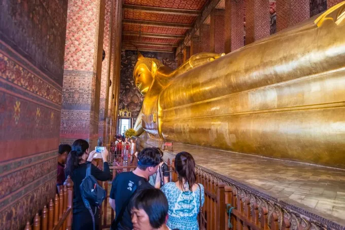 Nechejte se unést atmosférou chrámového komplexu v centru Bangkoku – Wat Pho. V Chrámu ležícího Buddhy se nachází 46 metrů dlouhá a 15 metrů vysoká pozlacená socha Buddhy.