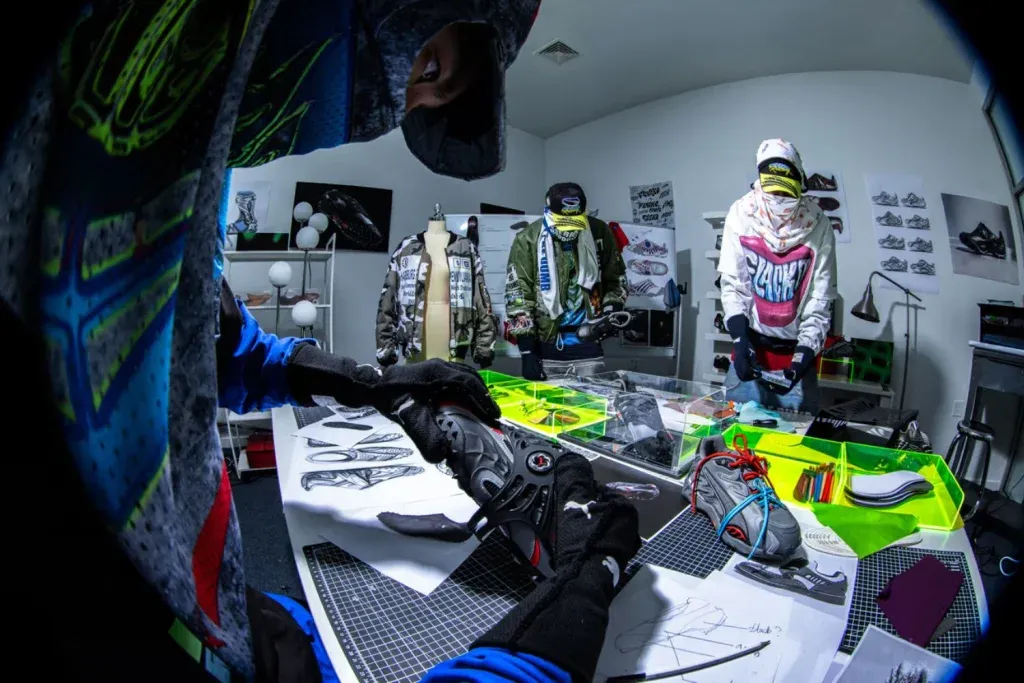 Rocky vrací do hry dva své oblíbené modely PUMA – Inhale a Mostro OG – po boku odvážné novinky, která se okamžitě stala osobním favoritem Flacka: Mostro Gabbia. Tenhle model s odnímatelnou „klecí“ čerpá svůj název z italštiny, spoutané monstrum, a propojuje ducha archivních siluet PUMA s moderní technologií a vrstvenou konstrukcí připomínající brnění. Popisovaný jako „designové stvoření“ je navržen tak, aby chránil, přizpůsoboval se a transformoval s každým krokem.