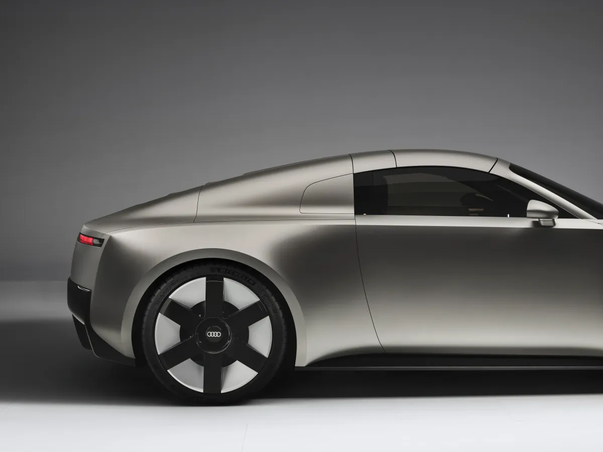 Středem nové přední části je vertikální rám, od kterého se odvíjí celý strukturální objem vozidla. Je inspirován vozem Auto Union Type C a třetí generací Audi A6. Má jasný, vzpřímený tvar, který vyjadřuje autoritu a identitu. Jde o progresivní interpretaci dědictví Audi, která dává vyniknout logu čtyř kruhů a integruje technologie budoucnosti. Silná linie ramen definuje objem tohoto dvoumístného sportovního vozu, jehož proporce vycházejí z centrálního uložení baterie. Kabina je posunuta výrazně dozadu a pevně usazena na karoserii.