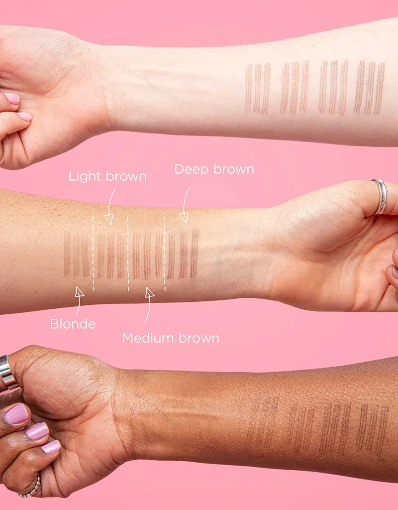 Brow Microfilling Pen je dostupný v 4 přirozených odstínech. Tyto odstíny byly navrženy tak, aby perfektně seděly na všechny odstíny obočí – od světlého, přes střední odstíny až po tmavé obočí. Dané odstíny se přizpůsobí Vašemu tónu pleti, ať již má Vaše pleť teplý nebo studený podtón.