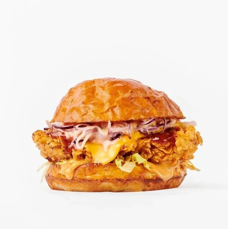 Chicken Burger Sweet & Chilli představuje elegantní variaci na drůbeží téma. Perfektně propečená kuřecí prsa bez přebytečného obalu, sladko-pálivá omáčka, křehký coleslaw a čedar tvoří harmonickou kombinaci. Salát drží tvar a není rozmočený. Výsledkem je burger, který se nebojí být odlišný, ale zároveň respektuje celkový tón nabídky.