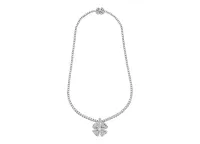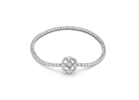 Novou sadu doplňuje oslnivý náramek z bílého zlata a diamantů. Snadno se nosí díky praktickému uzávěru, který je magicky ukrytý v třpytivé květině zdobící tento krásný kousek. Univerzální set šperků si pohrává s rafinovanou kombinací nadčasového diamantového tenisového stylu a elegantního květinového motivu.