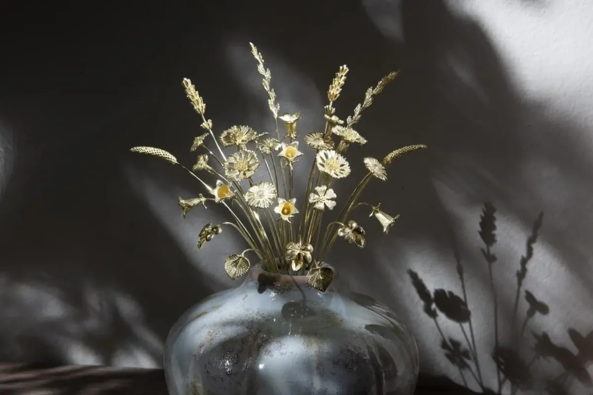 Vázy stříbrných nebo zlatých květinových šperků vytváří působivou, jemnou dominantu prostoru. A část lidí kupuje květiny pro ozdobu domova ve vázách.